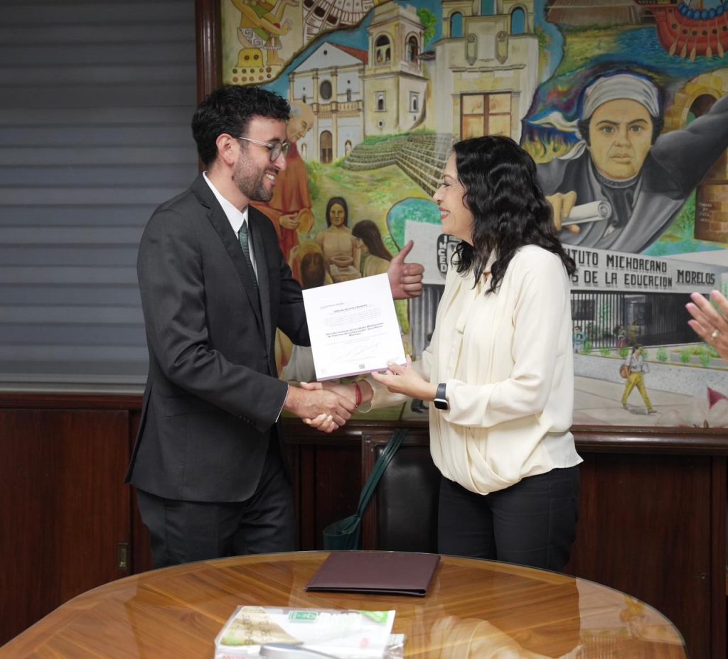 La titular del Instituto de Educación Media Superior y Superior del Estado (Iemsysem), Mariana Sosa Olmeda, fue la encargada de dar posesión del cargo a Anaya Villegas, a quien reconoció por su trayectoria académica y profesional, así como por su compromiso con la educación superior en Michoacán.