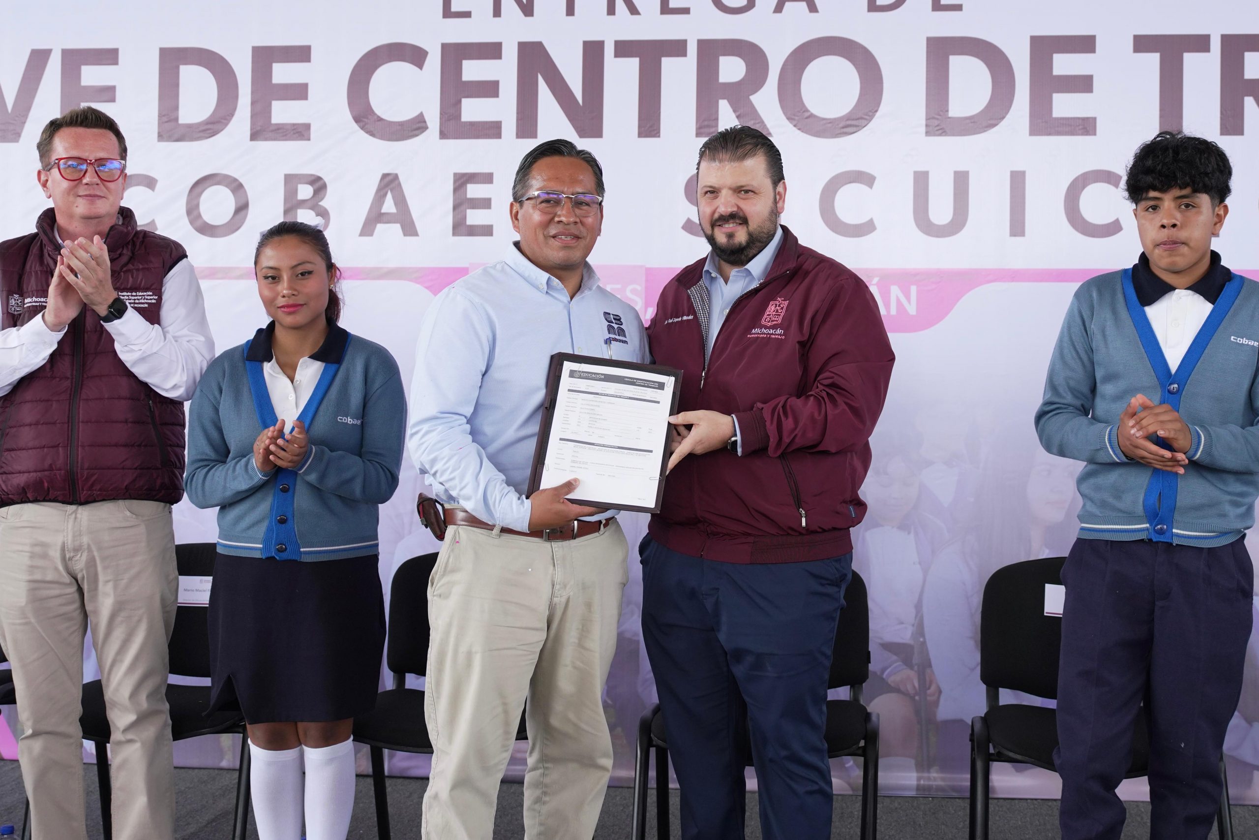 Los Reyes, Michoacán, 3 de septiembre de 2025.- Con el compromiso de fortalecer la educación media superior en comunidades originarias, la Secretaría de Gobierno y el Instituto de Educación Media Superior y Superior del Estado de Michoacán (Iemsysem) entregaron la Clave de Centro de Trabajo al Colegio de Bachilleres del plantel Sicuicho.